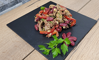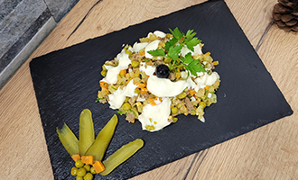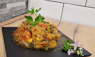 berenjenba,pimiento nrojo, pimiento verde, tomate, cebolla (100 g.).